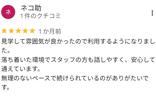 体調や生活リズムに合わせて、無理のないペースで通っていただけます。